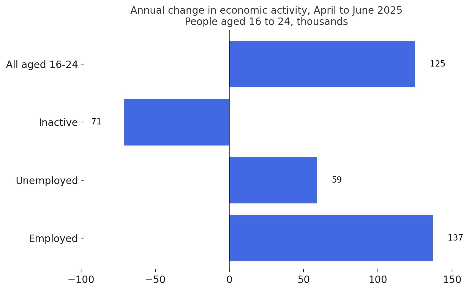 Nevertheless, the most recent figures for April–June 2025 offer insight into key developments among young people (aged 16 to 24) in the UK: