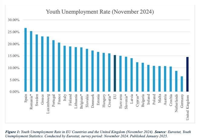 The analysis of youth unemployment across Europe and the United Kingdom reveals a multi-layered and enduring issue, one shaped by both cyclical economic downturns and deep-rooted structural weaknesses. While countries like Germany and the Netherlands maintain relatively low rates, others, including Spain, Romania, and Greece, continue to face alarmingly high youth joblessness. The United Kingdom, though no longer part of the EU, mirrors the EU average, pointing to shared challenges in navigating post-pandemic recovery, educational alignment, and labour market entry.